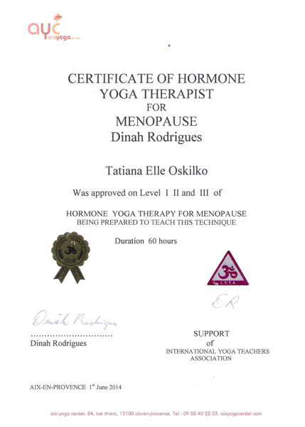 - Сертифицированный инструктор по гормональной йоге мирового уровня